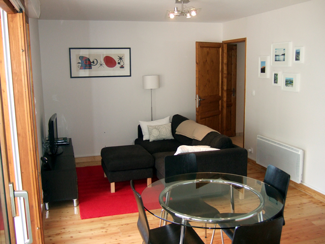 The 25m sq balcony has breathtaking views across the valley to the Domes des Rousses and La Fare waterfall. It gets the sun from the early morning until after lunch and has an outdoor dining table and chairs plus two sun loungers.